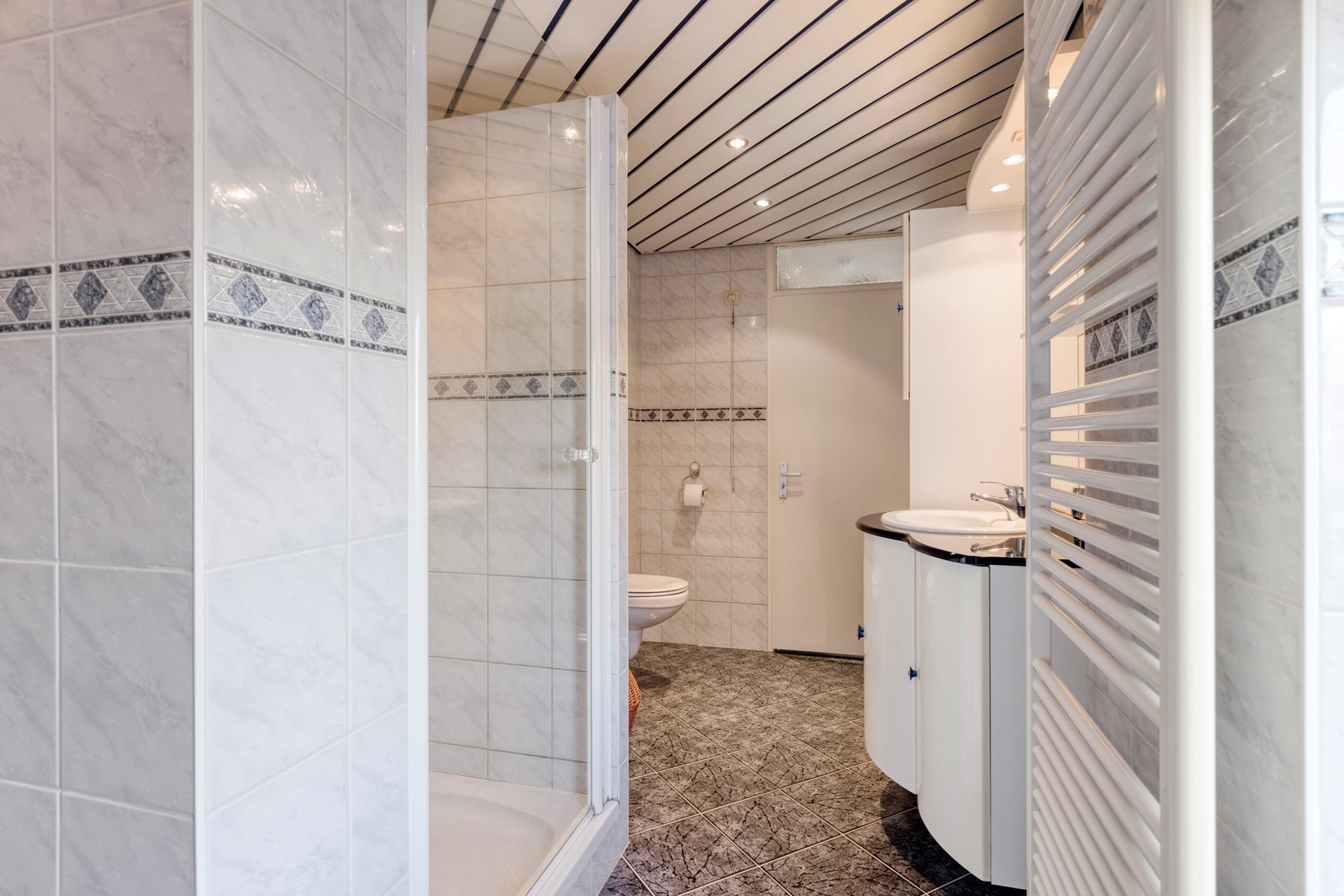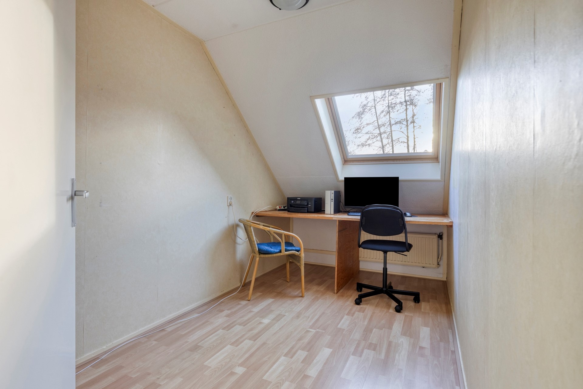 Op de eerste verdieping bevinden zich drie comfortabele slaapkamers en een verzorgde badkamer. De badkamer is praktisch ingericht en beschikt over een douche, een wastafel met spiegel en een toilet. De indeling is functioneel en biedt alles wat nodig is voor het dagelijks gezinsleven. De tweede verdieping verrast met een vierde, ruime slaapkamer die ook uitstekend geschikt is als thuiswerkruimte.