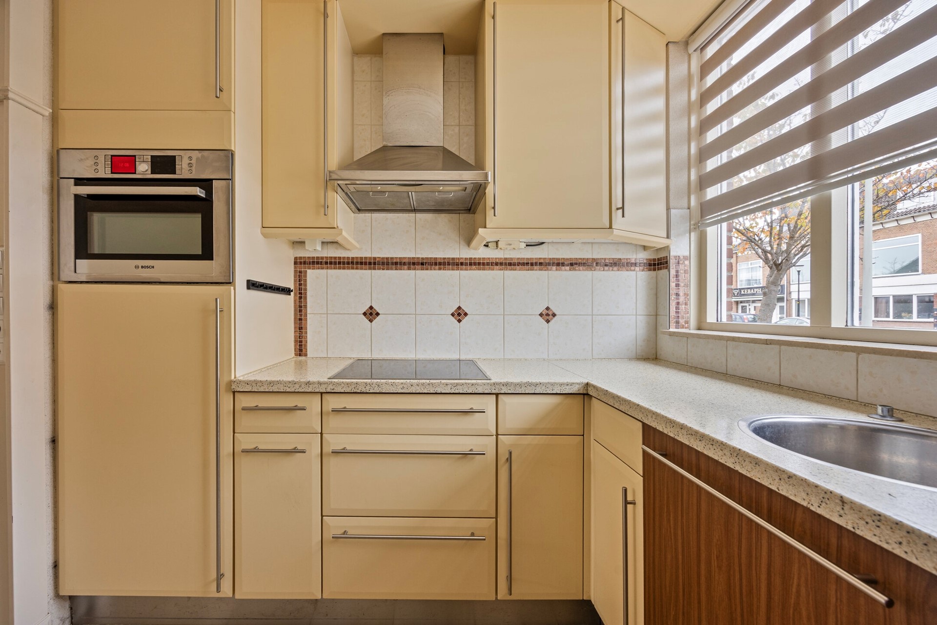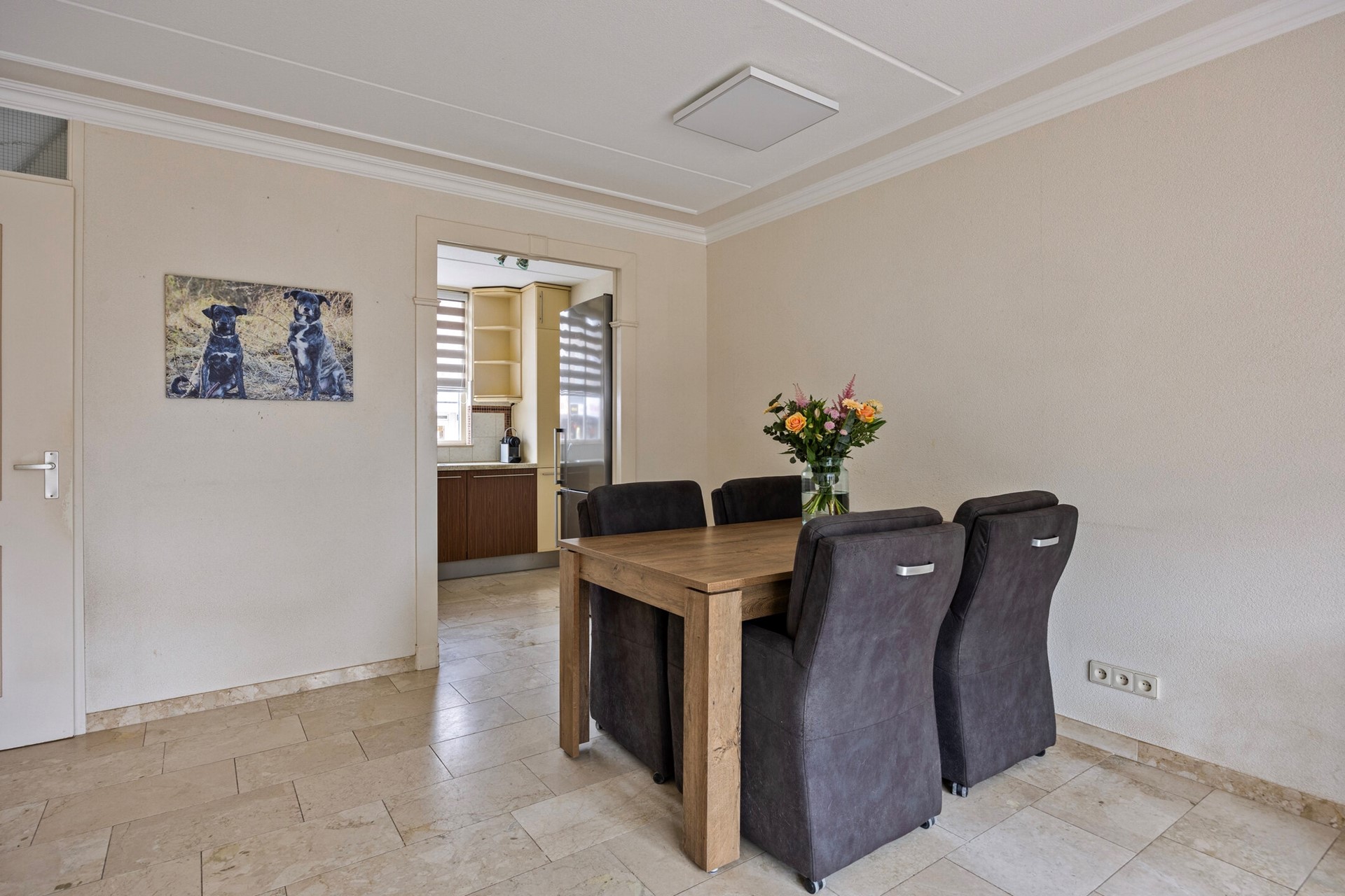 Bij binnenkomst valt meteen de lichte en sfeervolle woonkamer op. Grote raampartijen aan de achterzijde zorgen voor een zee van daglicht en geven een vrij uitzicht op de zonnige achtertuin. De woonkamer is ruim genoeg voor een comfortabele zithoek en een grote eettafel waar het hele gezin samen kan komen. Dankzij de open indeling ontstaat er een fijne verbinding tussen wonen, koken en eten. Ideaal voor gezinnen die houden van gezelligheid en ruimte. De open keuken aan de voorzijde van het huis is modern uitgevoerd en voorzien van diverse inbouwapparaten, waaronder een kookplaat, oven, afzuigkap en vaatwasser. Terwijl je aan het koken bent, kijk je uit over de straat en houd je contact met de rest van het gezin in de woonkamer.