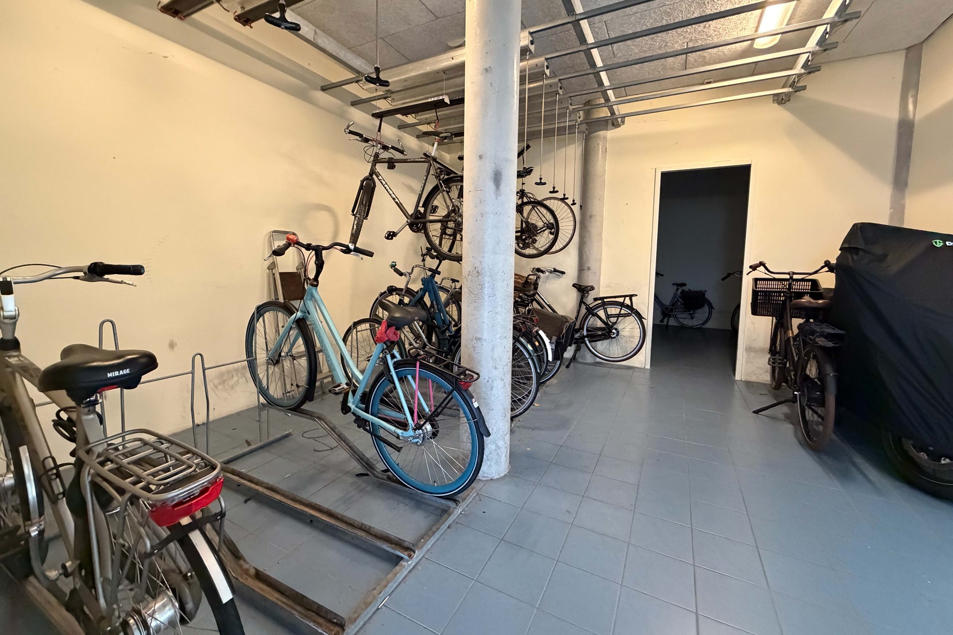 De slaapkamer is opvallend ruim en biedt alle comfort voor een rustige nachtrust, met genoeg plek voor een grote kast of extra meubels. Het balkon is bereikbaar via de slaapkamer en is gelegen op het zonnige zuidwesten. De badkamer is praktisch en compleet ingericht met een douche, een wastafel met spiegel en een toilet. Extra handig is de inpandige berging: ideaal voor voorraad, koffers, sportspullen of alles wat je graag netjes uit het zicht bewaart, zodat je woonruimte altijd rustig en opgeruimd blijft. Op de begane grond is een gemeenschappelijke fietsenstalling aanwezig. In de straat is het mogelijk om te parkeren zonder vergunning. Er zijn veel parkeerplaatsen.