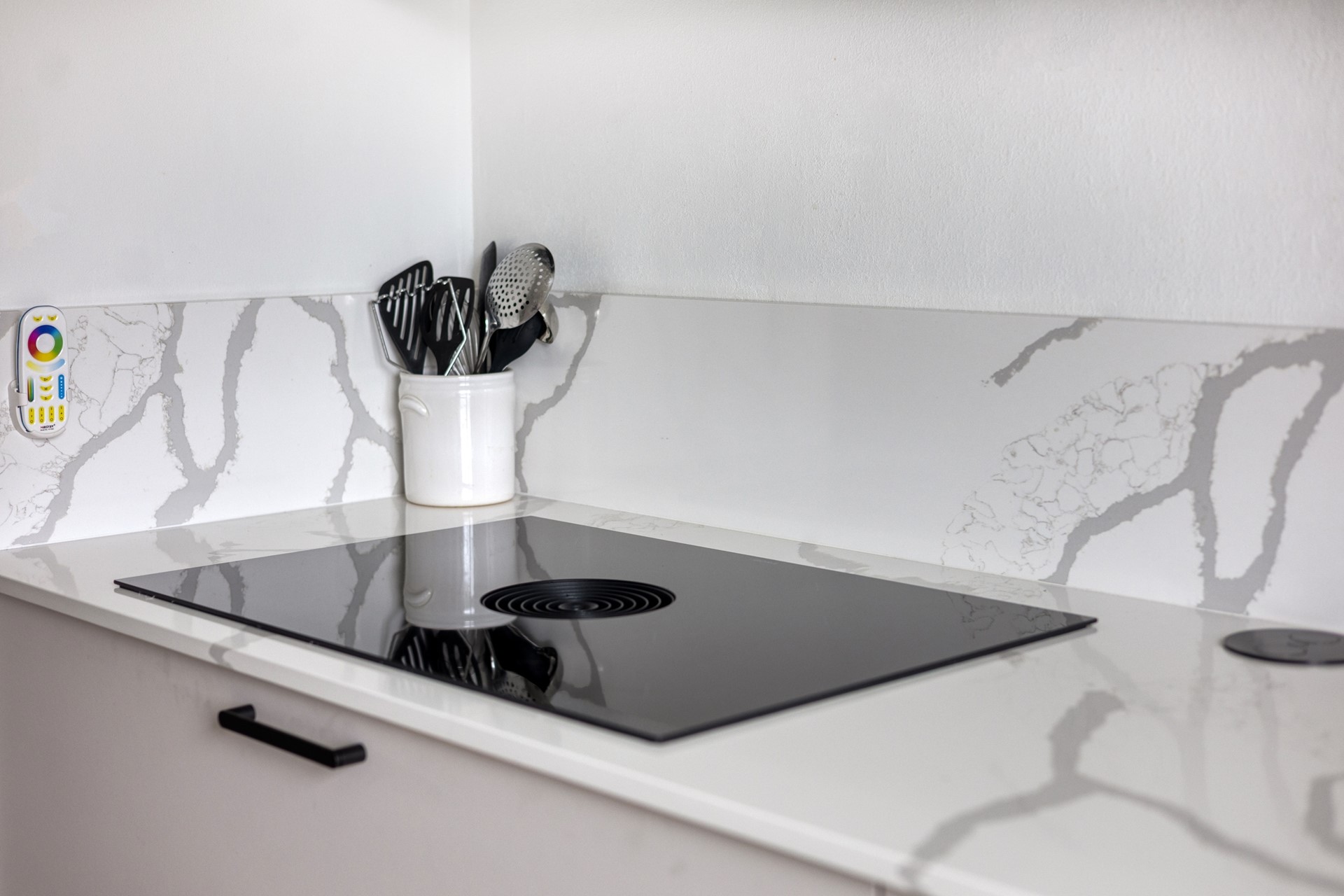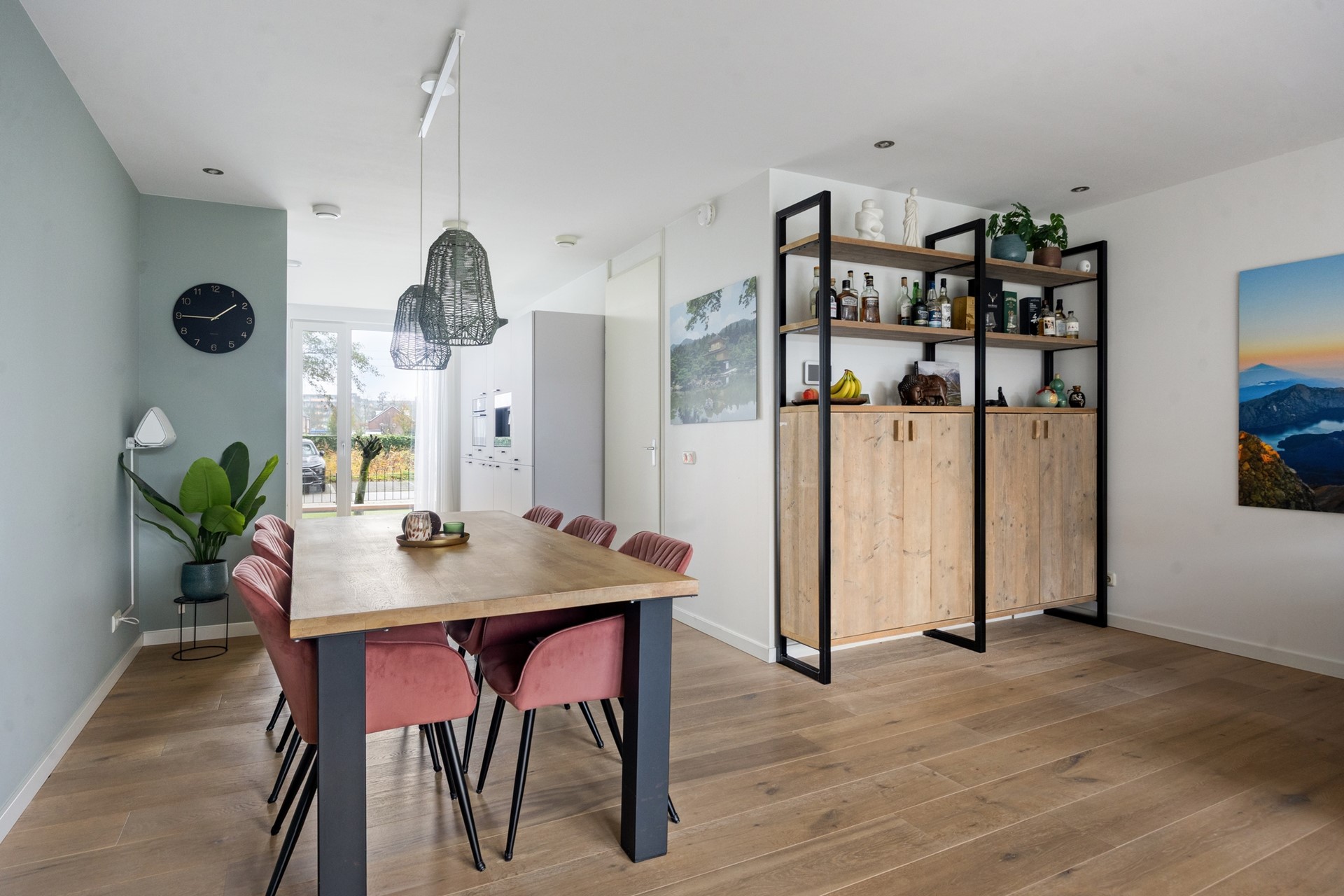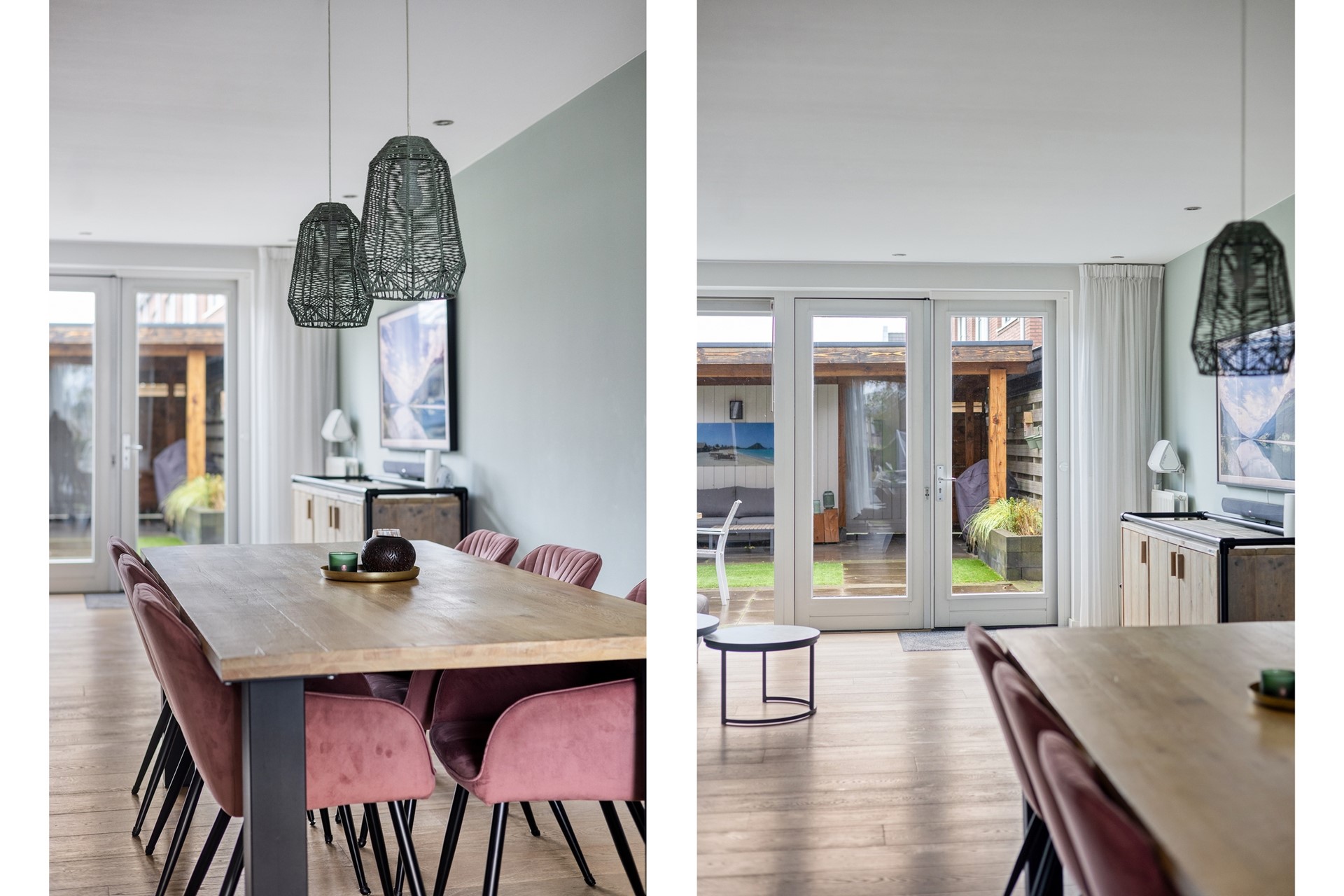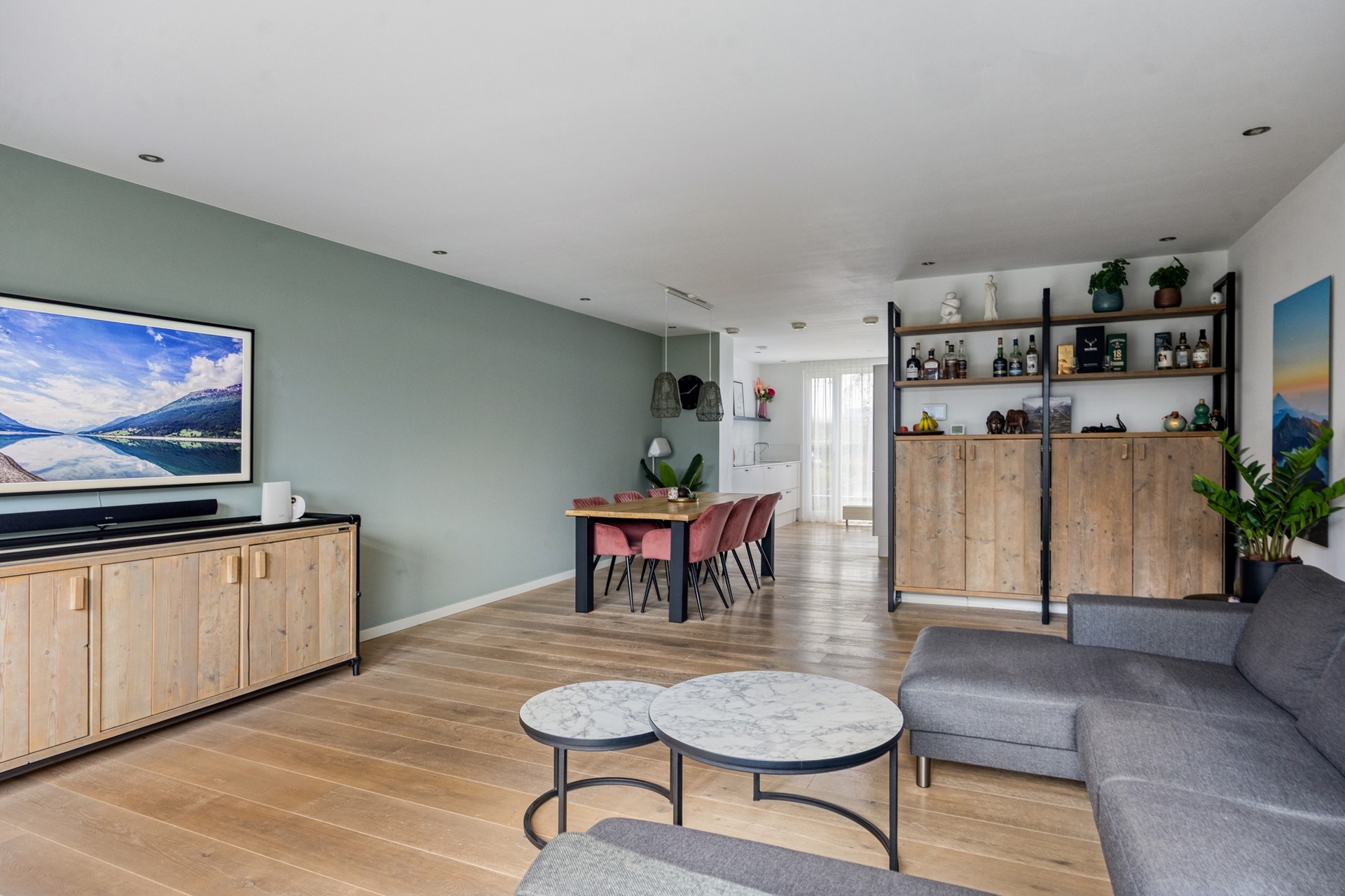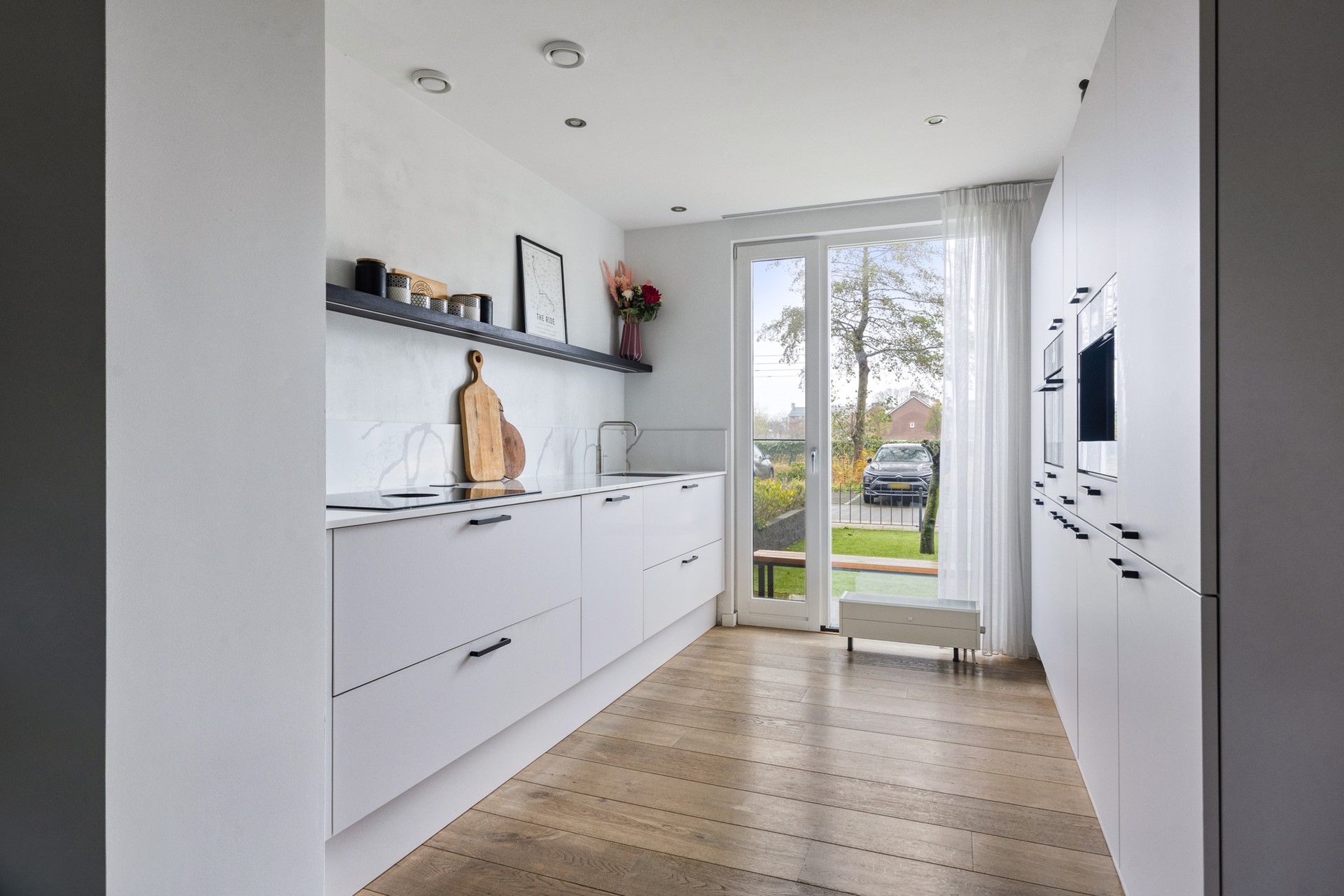 De entree is ruim en verzorgd, waarna u wordt meegenomen naar de verrassend lichte woonkamer. Dankzij de grote ramen aan de achterzijde geniet u van een prachtige lichtinval en een vrij zicht op de fraai aangelegde achtertuin. De woonkamer ademt een sfeervolle, warme ambiance en vormt een ideale plek voor zowel ontspanning als gezelligheid. Hier komt u na een drukke dag écht thuis. De moderne open keuken is een echte eyecatcher: luxe uitgevoerd met hoogwaardige materialen, volop werkruimte en een eigentijdse uitstraling. Een perfecte ruimte voor kookliefhebbers, maar ook een heerlijke plek om samen te komen tijdens het koken. De keuken is voorzien van Bora kookplaat met plasma filter, Quooker, combi oven met magnetron functie, professionele koffiemachine, vaatwasser, koelkast en vriezer.