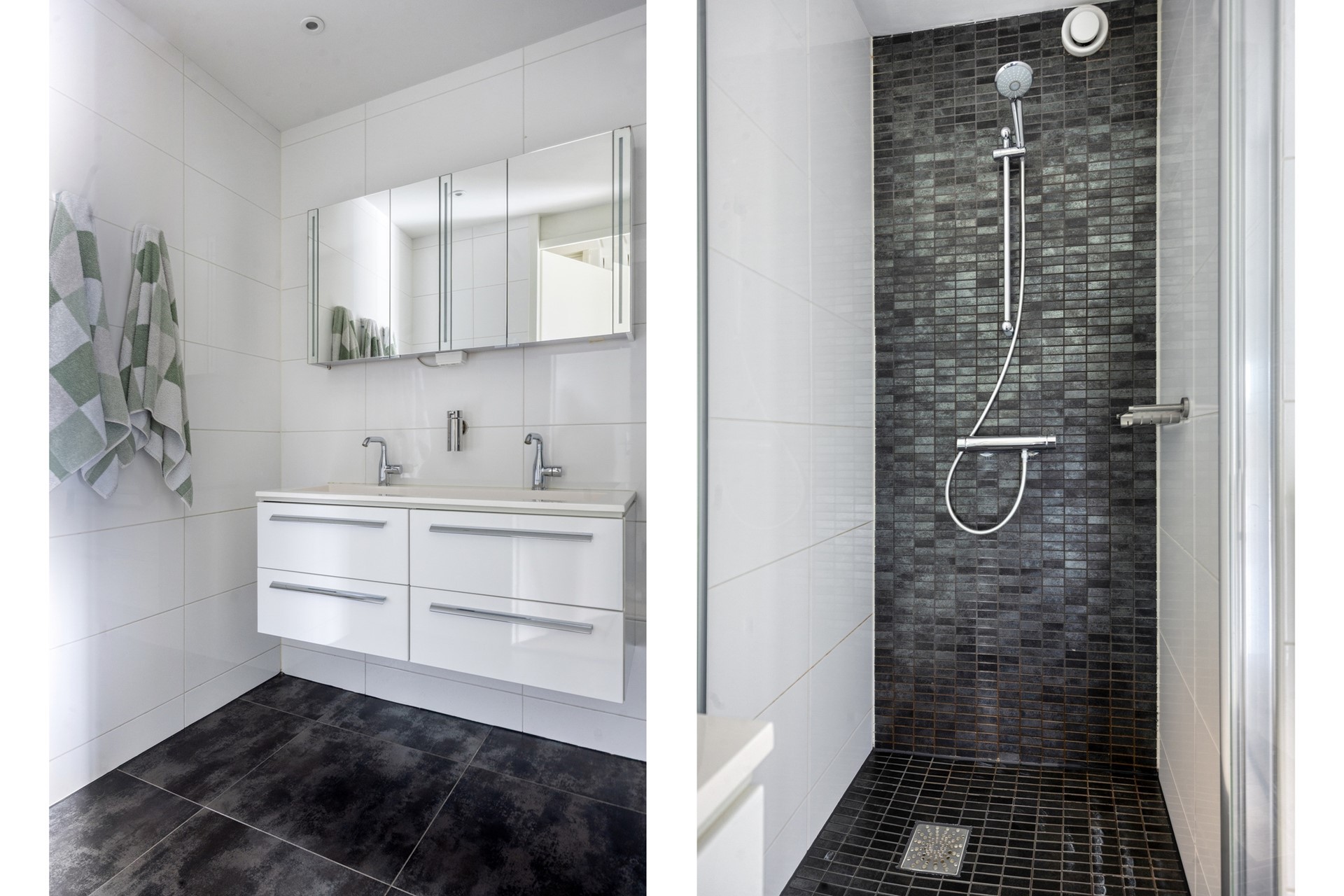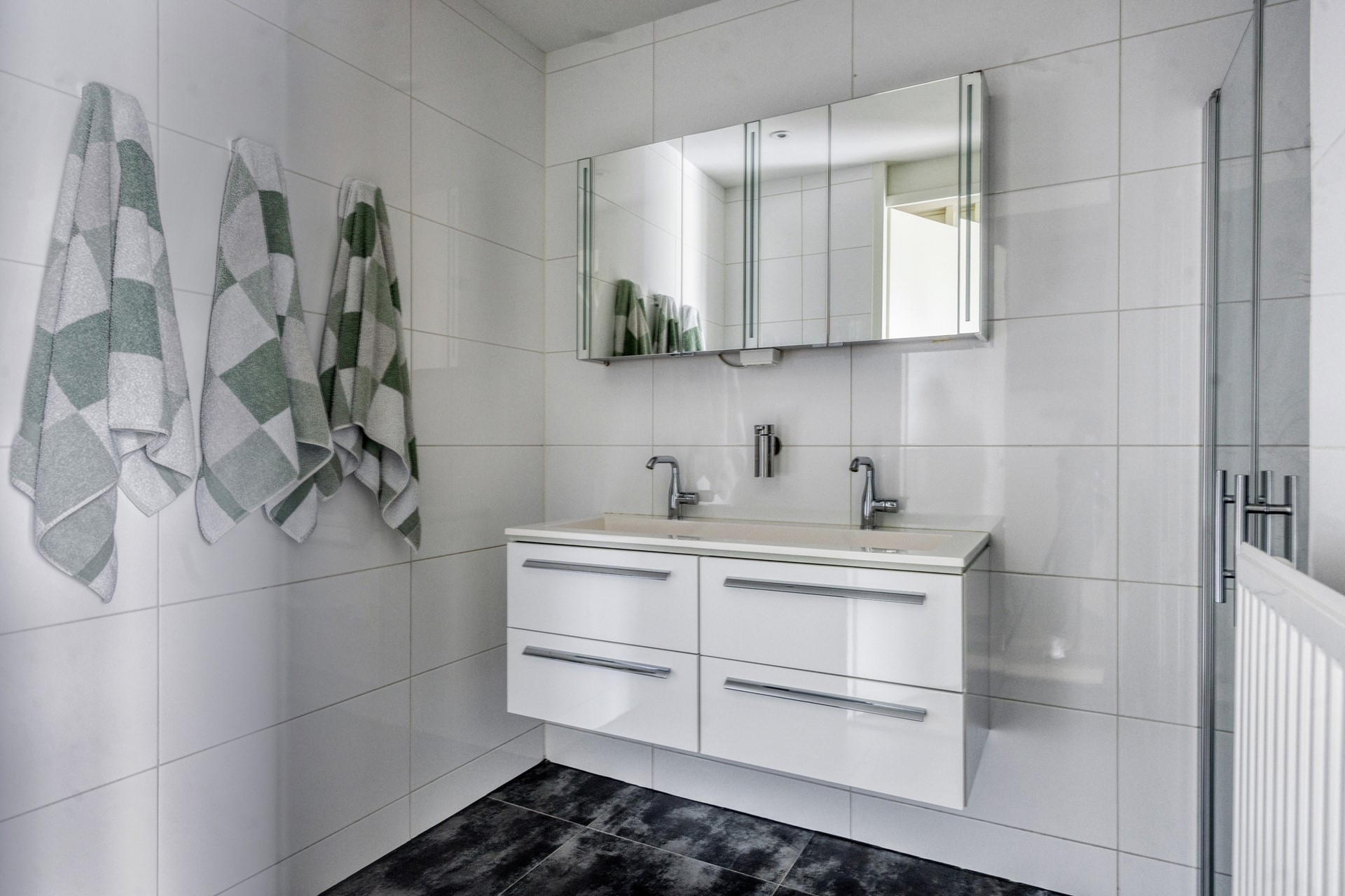 Op de eerste verdieping bevinden zich drie goed bemeten slaapkamers, die allemaal een fijne lichtinval en rustige uitstraling hebben. De hoofdslaapkamer is een heerlijk privéverblijf dankzij de eigen ensuite badkamer met bad, een luxe die niet elke woning biedt. Daarnaast vindt u op deze verdieping een tweede, complete badkamer die zeer praktisch is voor gezinsleden of gasten. Deze badkamer heeft een dubbele wastafel met spiegel en inloopdouche. Toilet is via een separate ruimte bereikbaar. Op de tweede verdieping loopt u via de ruime voorzolder naar twee slaapkamers, ideaal te gebruiken als kinder-, werk- of logeerkamer. Dankzij de rechte wanden en de nette afwerking zijn het volwaardige ruimtes met talloze gebruiksmogelijkheden. In totaal heeft de woning vijf slaapkamers.