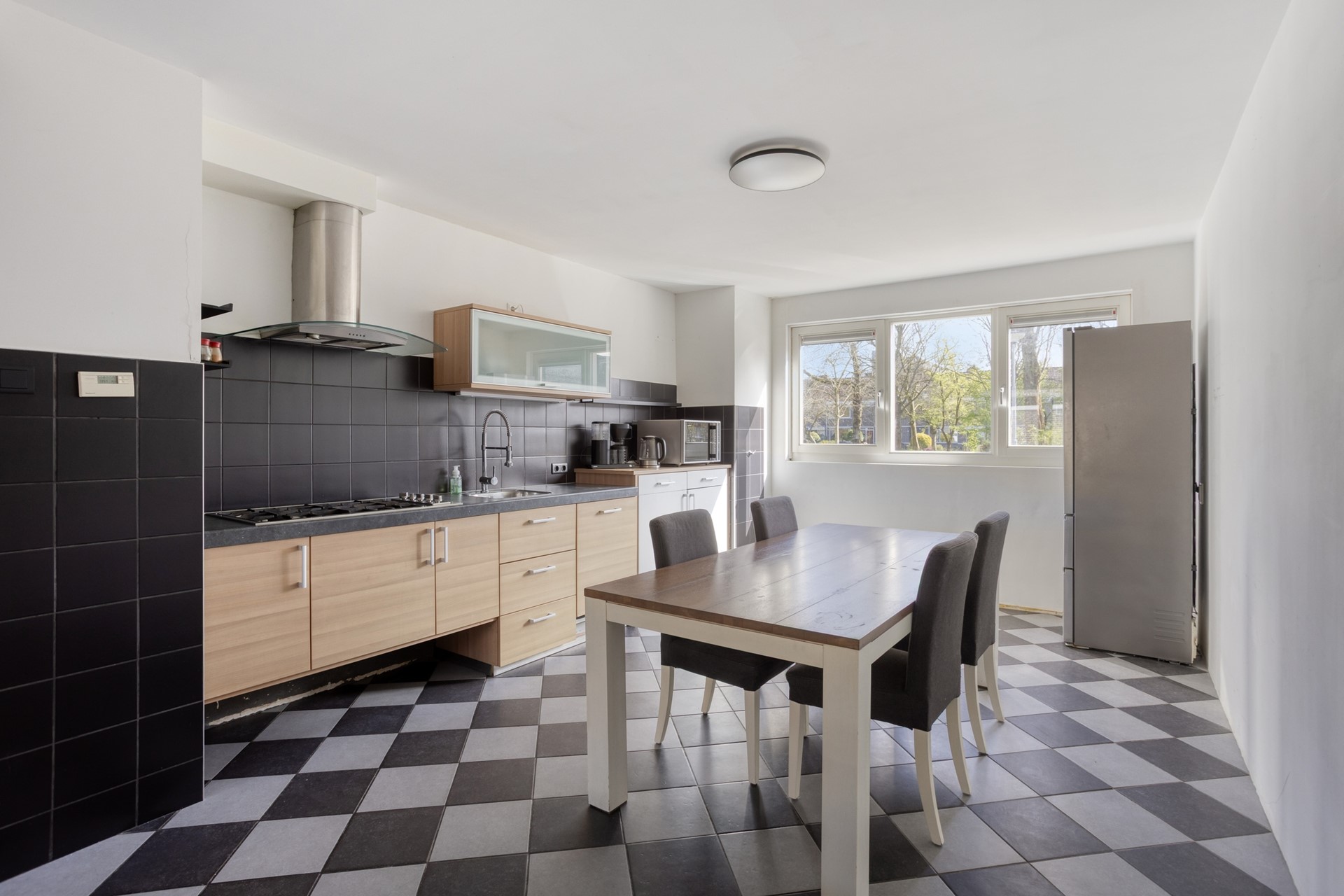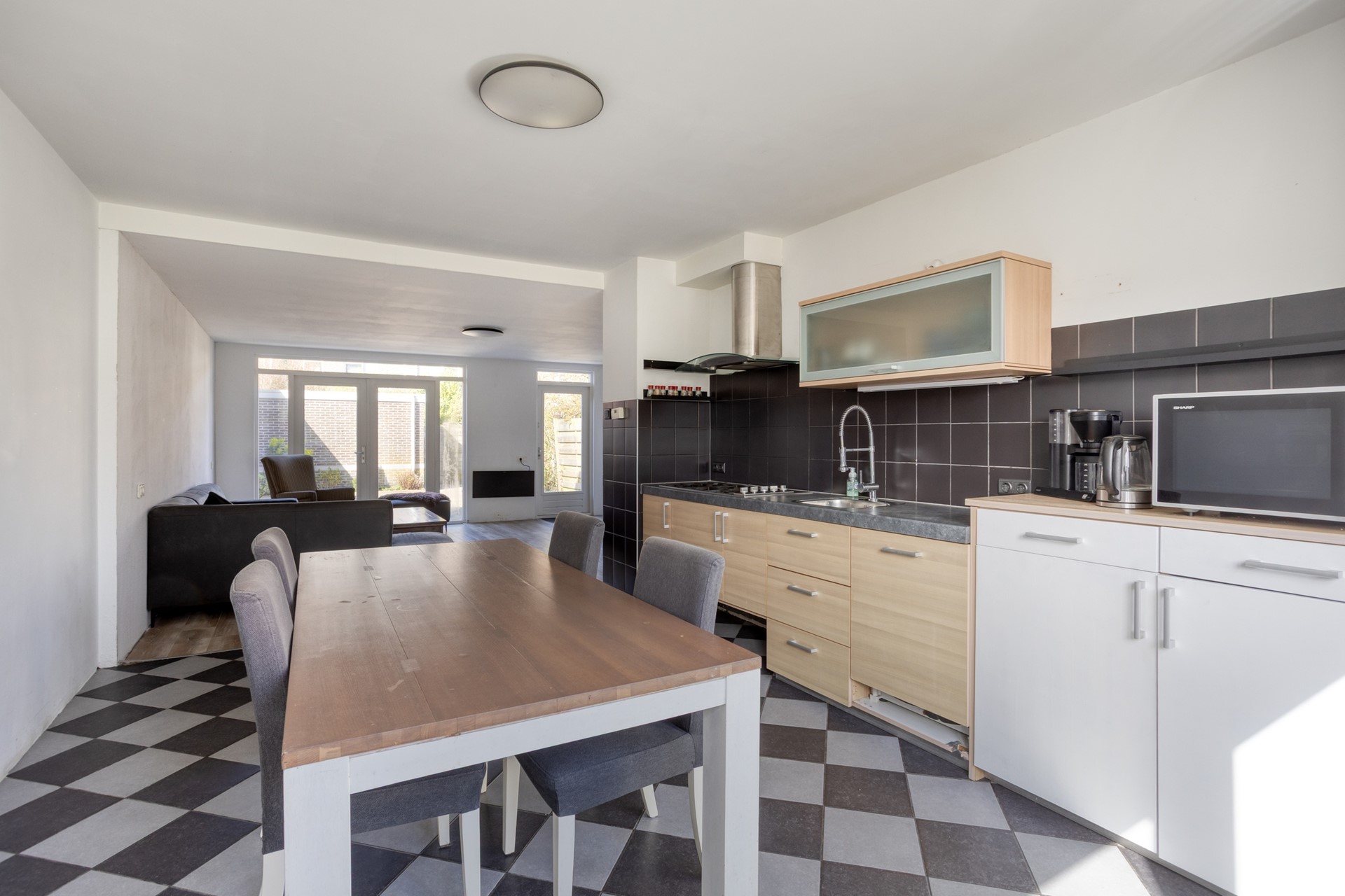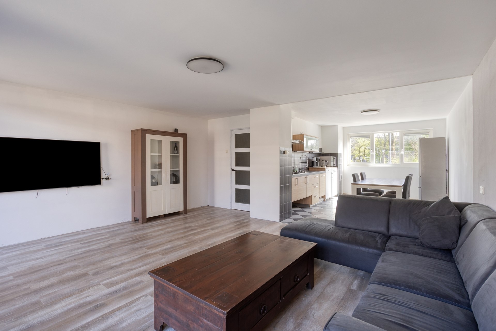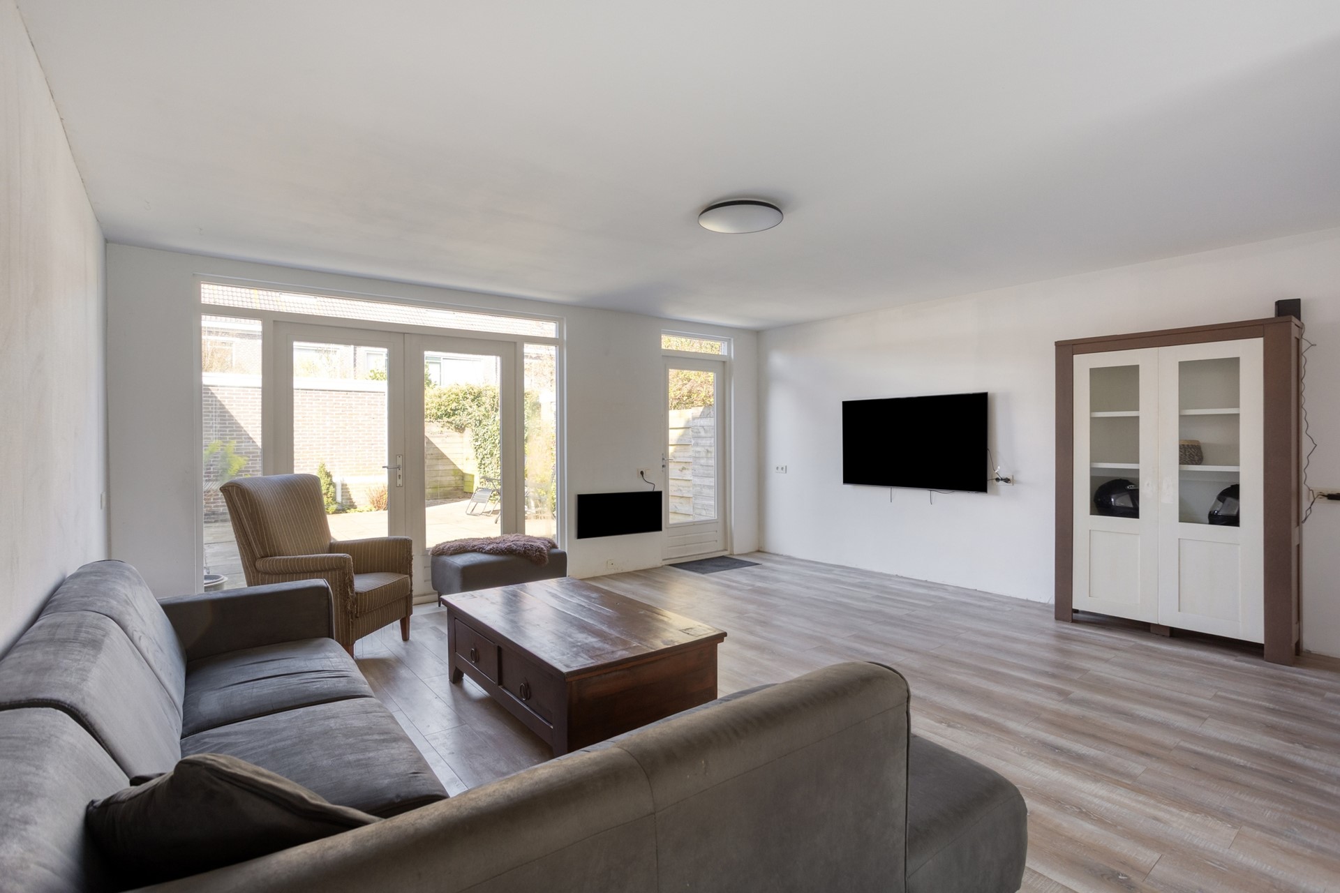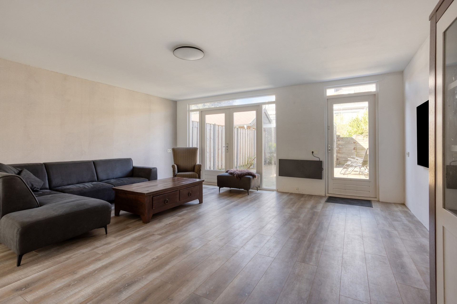 Bij binnenkomst valt direct de prettige indeling op. Aan de voorzijde van de woning bevindt zich de open keuken, die is voorzien van veel werkruimte en daardoor niet alleen praktisch, maar ook een fijne plek is voor kookliefhebbers. De uitgebouwde woonkamer is heerlijk licht en biedt volop ruimte voor een comfortabele zithoek en een royale eethoek. Dankzij de openslaande deuren staat de woonkamer in directe verbinding met de zonnige achtertuin, waardoor binnen en buiten op een natuurlijke manier in elkaar overlopen.