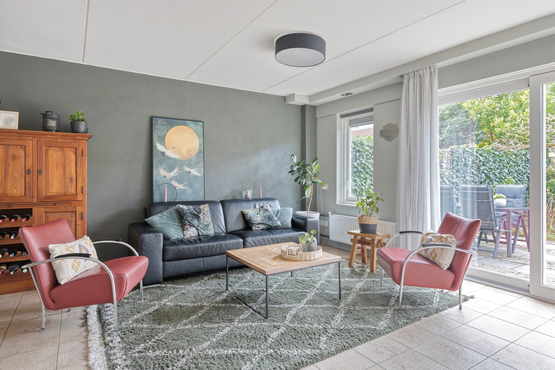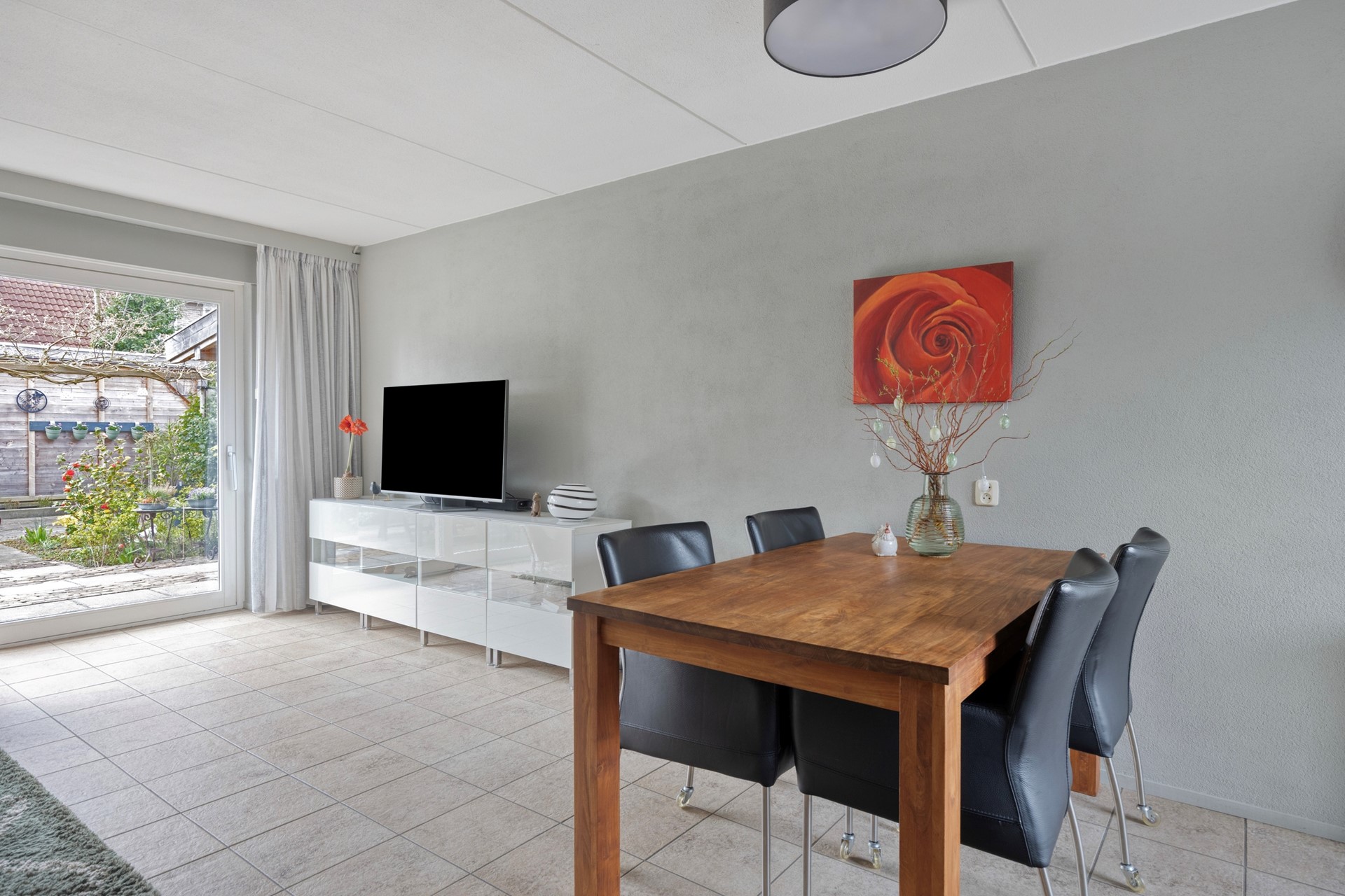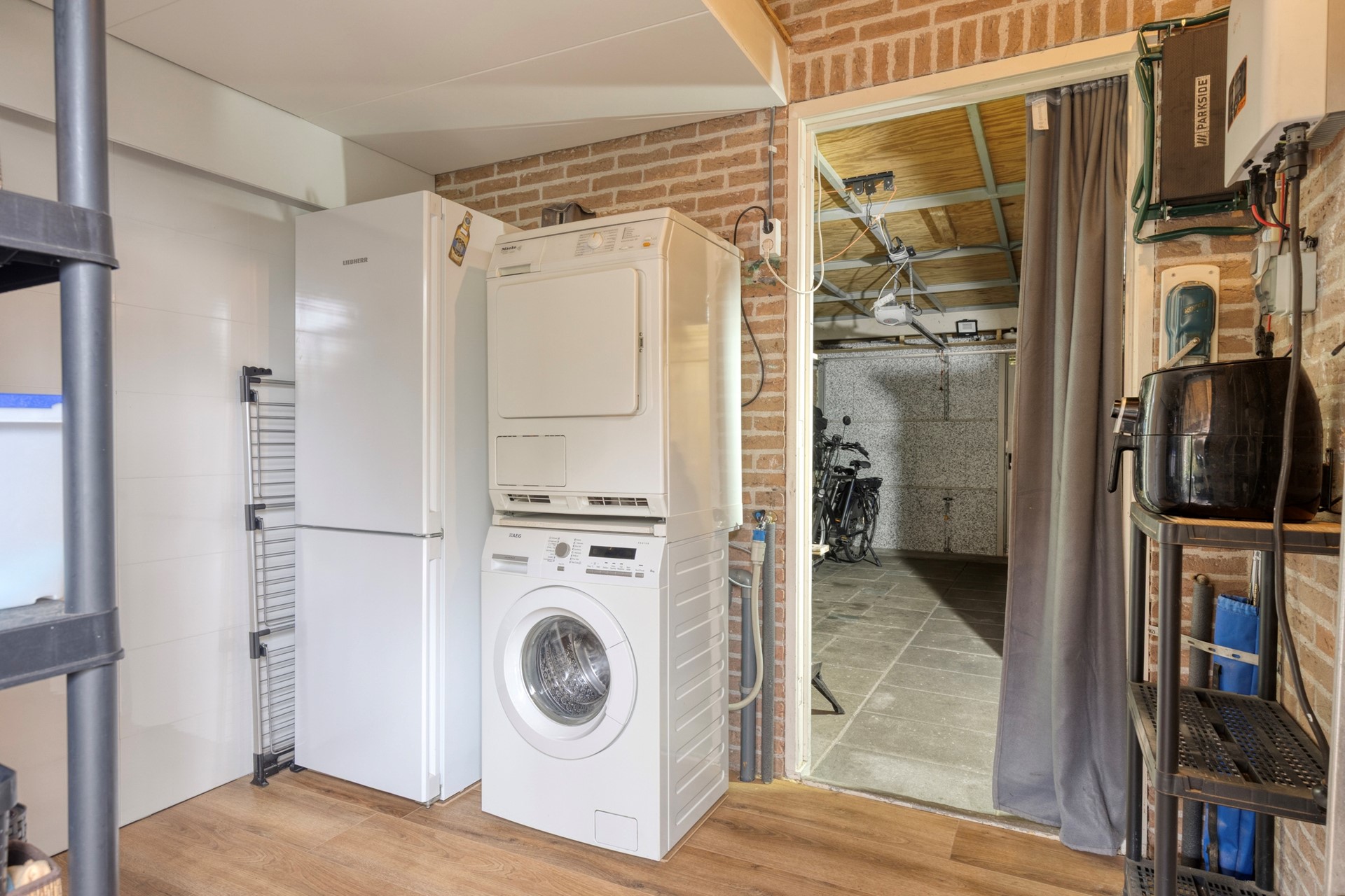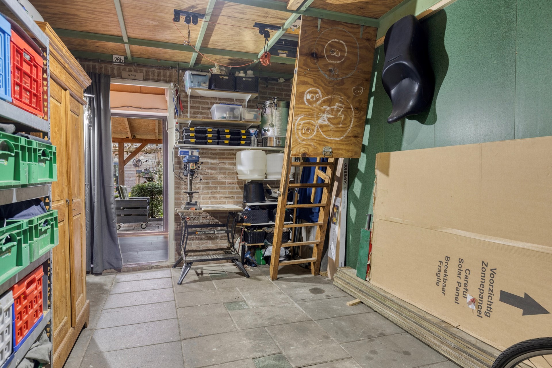 De woning beschikt over een garage met eigen oprit en extra bergruimte dankzij de vliering, ideaal voor het opbergen van seizoensspullen en andere zaken die u graag uit het zicht bewaart. De achtertuin is zowel via de woonkamer als via de garage bereikbaar, wat zorgt voor extra gebruiksgemak.