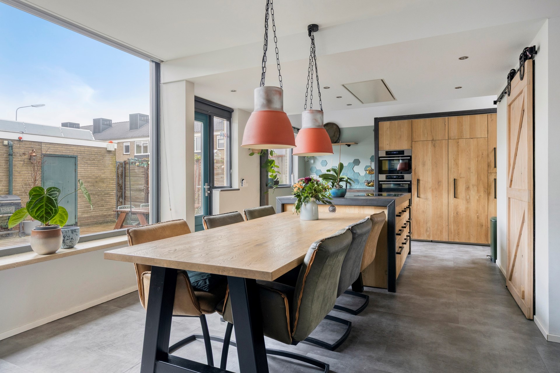 Binnen valt direct de sfeervolle woonkamer op: licht, uitnodigend en prettig ingedeeld. De open keuken sluit hier naadloos op aan, waardoor een fijne leefruimte ontstaat waar koken, eten en ontspannen moeiteloos samenkomen. Of u nu gezellig met het gezin aan tafel zit of vrienden ontvangt: dit is een huis dat klopt.