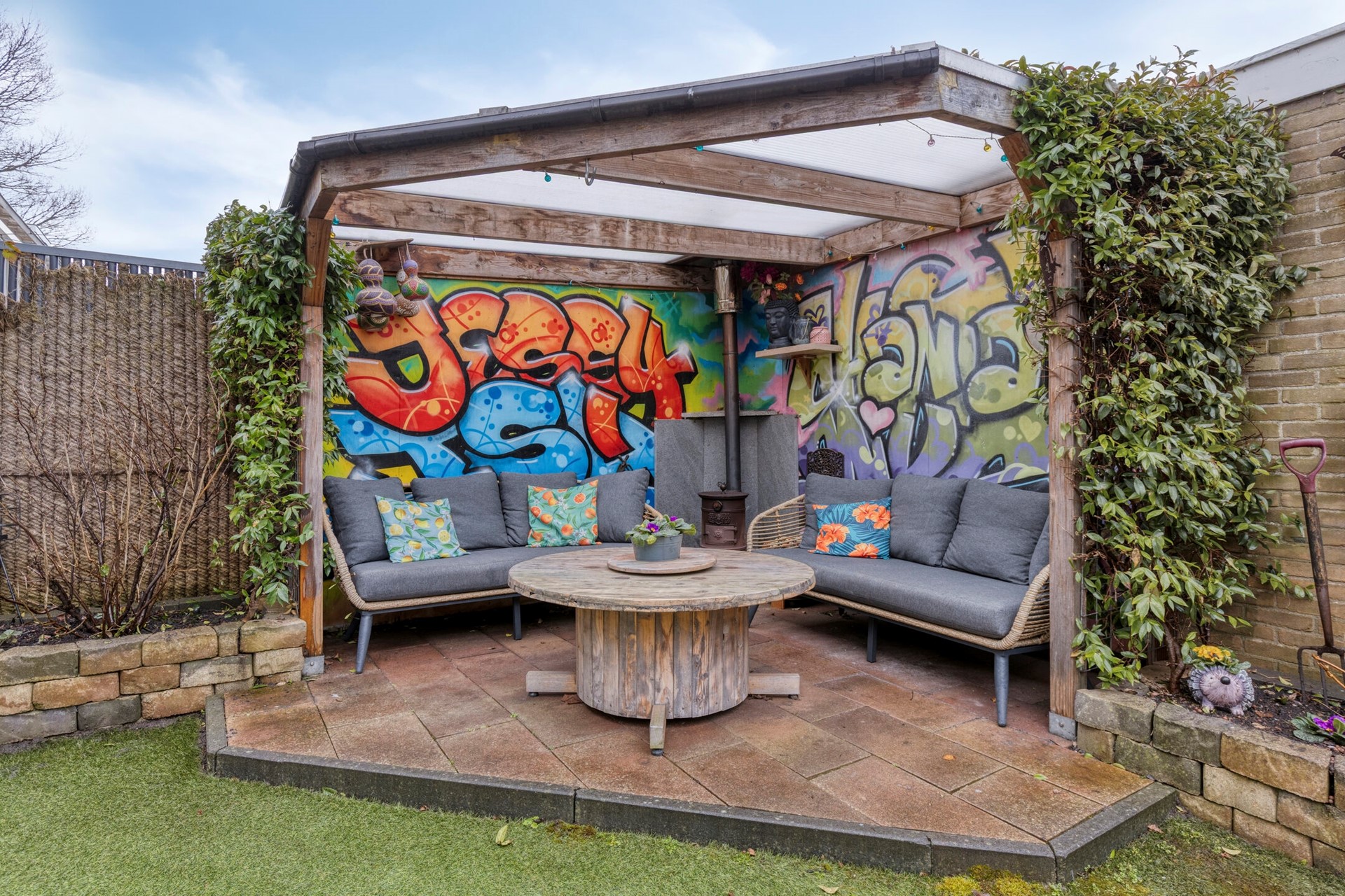 Ook buiten is het genieten. De achtertuin is gunstig gelegen op het zuidwesten en biedt veel zon. Op het terras kunt u al vroeg in het jaar heerlijk buiten zitten, van een kop koffie in de ochtend tot lange avonden in de zomer. Achter in de tuin staat een vrijstaande garage, bereikbaar via de achtertuin: perfect voor extra bergruimte, fietsen, motor of hobby, en gewoon heel praktisch in het dagelijks gebruik.