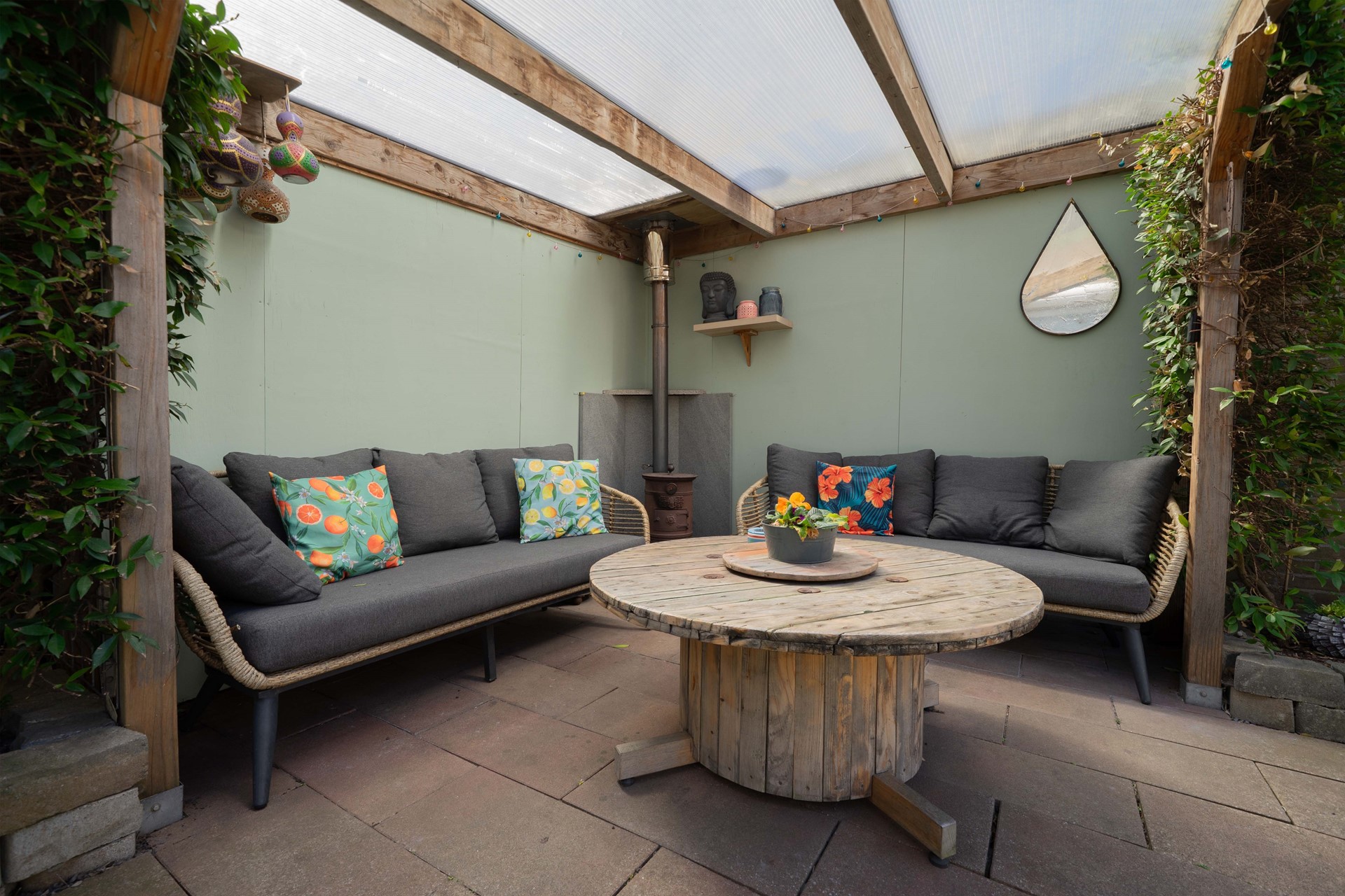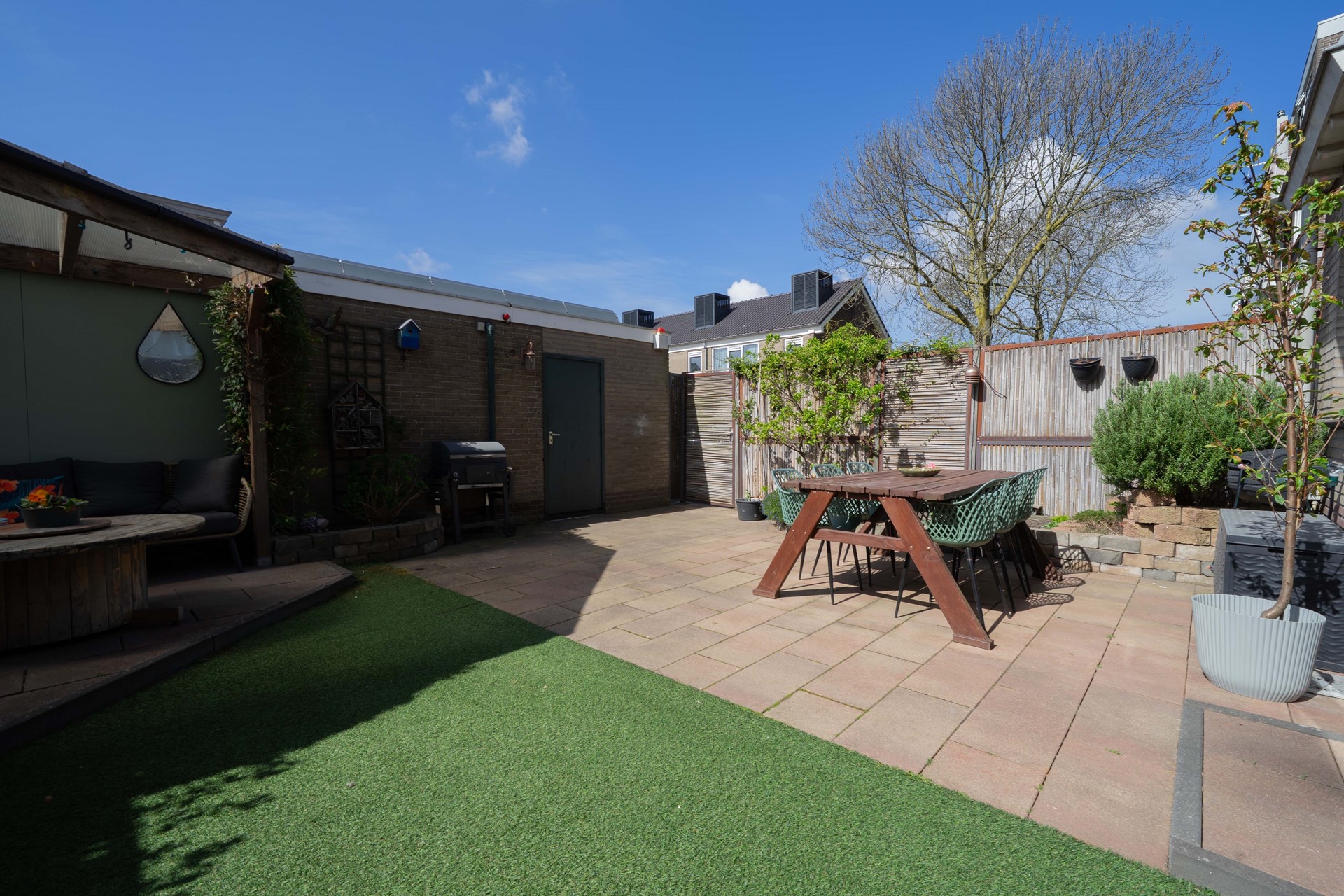 Ook buiten is het genieten. De achtertuin is gunstig gelegen op het zuidwesten en biedt veel zon. Op het terras kunt u al vroeg in het jaar heerlijk buiten zitten, van een kop koffie in de ochtend tot lange avonden in de zomer. Achter in de tuin staat een vrijstaande garage, bereikbaar via de achtertuin: perfect voor extra bergruimte, fietsen, motor of hobby, en gewoon heel praktisch in het dagelijks gebruik.